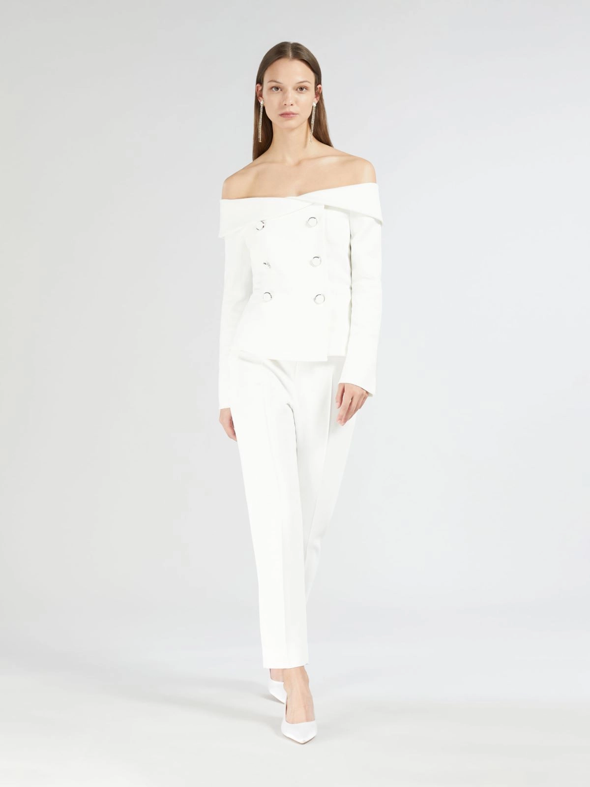 Elegant cigarette trousers cropped at the ankle.